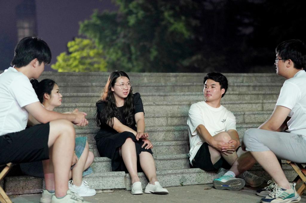夜色渐浓,月光为校园镀上银辉。毕业生离校期间,学生工作干部每晚校园内夜间和晚间值班,温情守护和暖心陪伴着毕业生。值班时,曹园遇到了即将毕业的学生会主席团,与他们展开了一次月下长谈。职业选择的困惑、人际交往的智慧、生活平衡的艺术......她既是传道授业的师长,又是知心解惑的朋友。那些真挚的分享,就像夜空中最亮的星星,为即将启程的年轻人照亮前路。