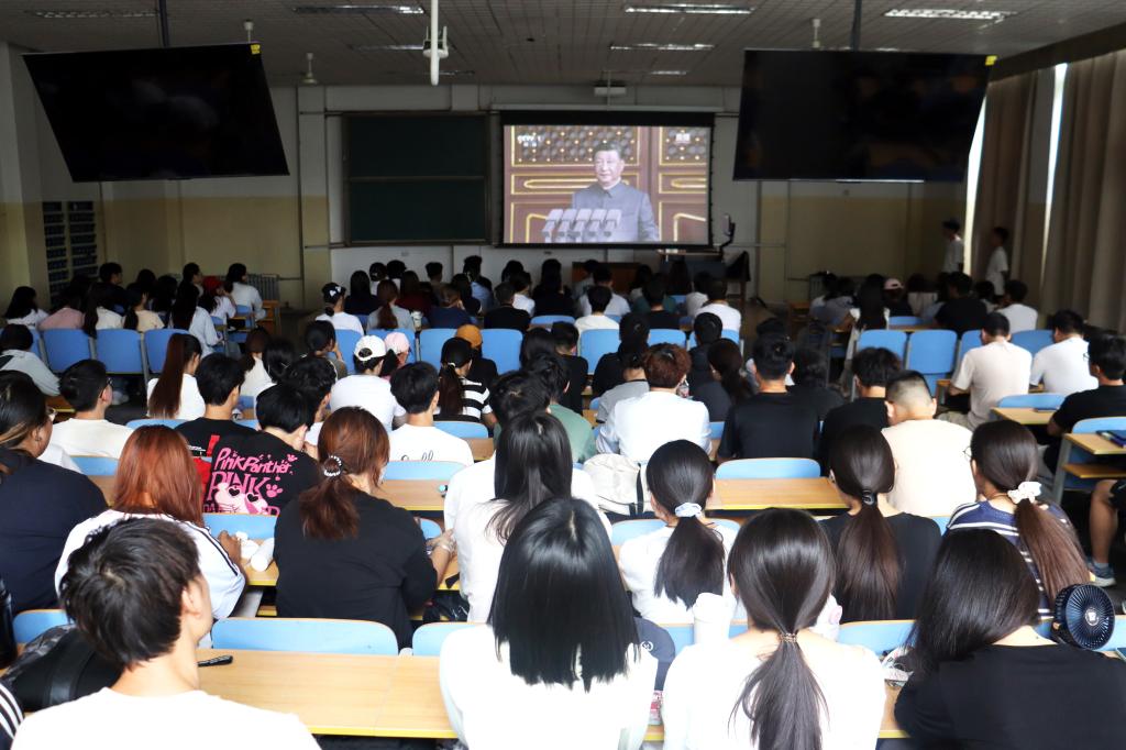 2025年9月3日上午,纪念中国人民抗日战争暨世界反法西斯战争胜利80周年大会在北京隆重举行。学团工作部统一部署,在两校园开放了多个场所供学生集中观看阅兵盛况,共同回顾峥嵘岁月,感受强国强军风采,上了一堂生动的沉浸式爱国主义教育课。