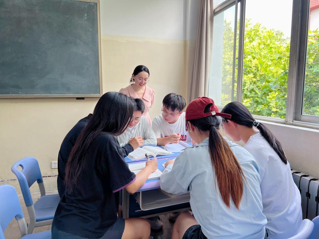 午后的阳光透过窗户洒进教室,彭潇组织的“朋辈帮扶”活动正在有序开展。她邀请“学科小能手”结对帮扶,为学习有困难的学生梳理知识点、讲解难题。“每个学生的学习基础和节奏不同,每个人都有自己的‘优势学科’,帮扶活动旨在促进同学间的互助共进,不让任何一个人掉队。”她用实际行动搭建起互助的平台,让知识在传递中更清晰,让努力在陪伴中更有力量。