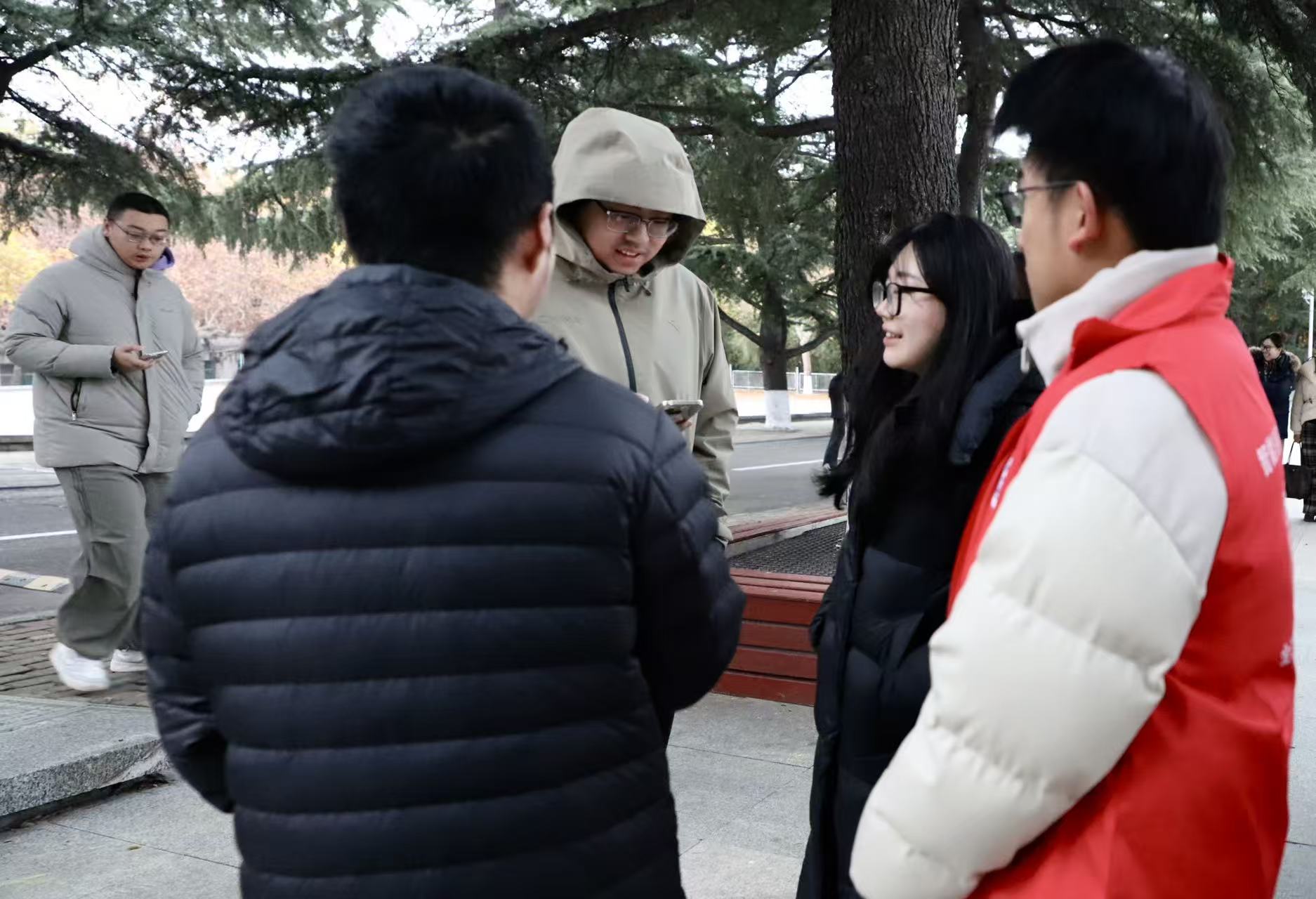 当清晨的第一缕阳光轻柔地洒满校园,李梓祎已整齐着装,准时出现在文化广场。她与学院学生会权益服务部的同学一同开启清晨的志愿服务,并肩开展早签检查工作。在这项基础性的服务岗位上,她仔细核对每一份名单,有条不紊地维护现场秩序。“清晨时光最珍贵,规律作息是高效学习的前提。”她轻声叮嘱着过往同学,眼眸中满是关切。在早签检查过程中,她不仅关注学生的出勤情况,更将志愿服务的内涵延伸至人文关怀,细心观察大家的精神状态,让制度执行在志愿者的温情服务中既有规范力度,又不失人文温度。