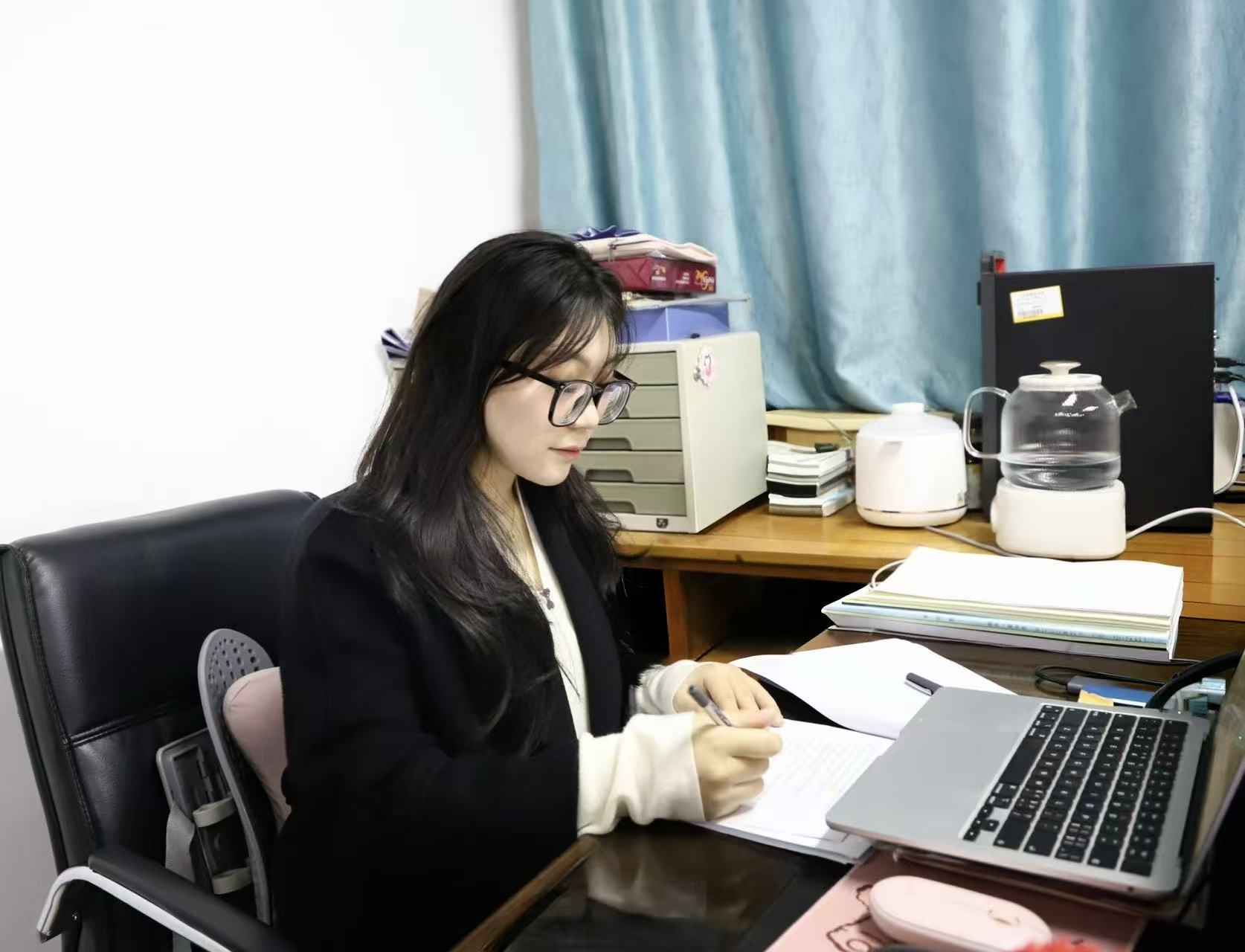 结束一天的志愿服务工作,李梓祎抓紧这宝贵的空闲时间,摊开学习资料,专注投入学习。作为一名与学生共同进步的青年辅导员,她深知终身学习的重要意义,始终坚持提升自身的理论素养与专业能力。她对自我成长的这份执着,对志愿服务的这份坚守,也在潜移默化中影响着身边的学生干部,成为大家眼中以身作则、言传身教的好榜样。