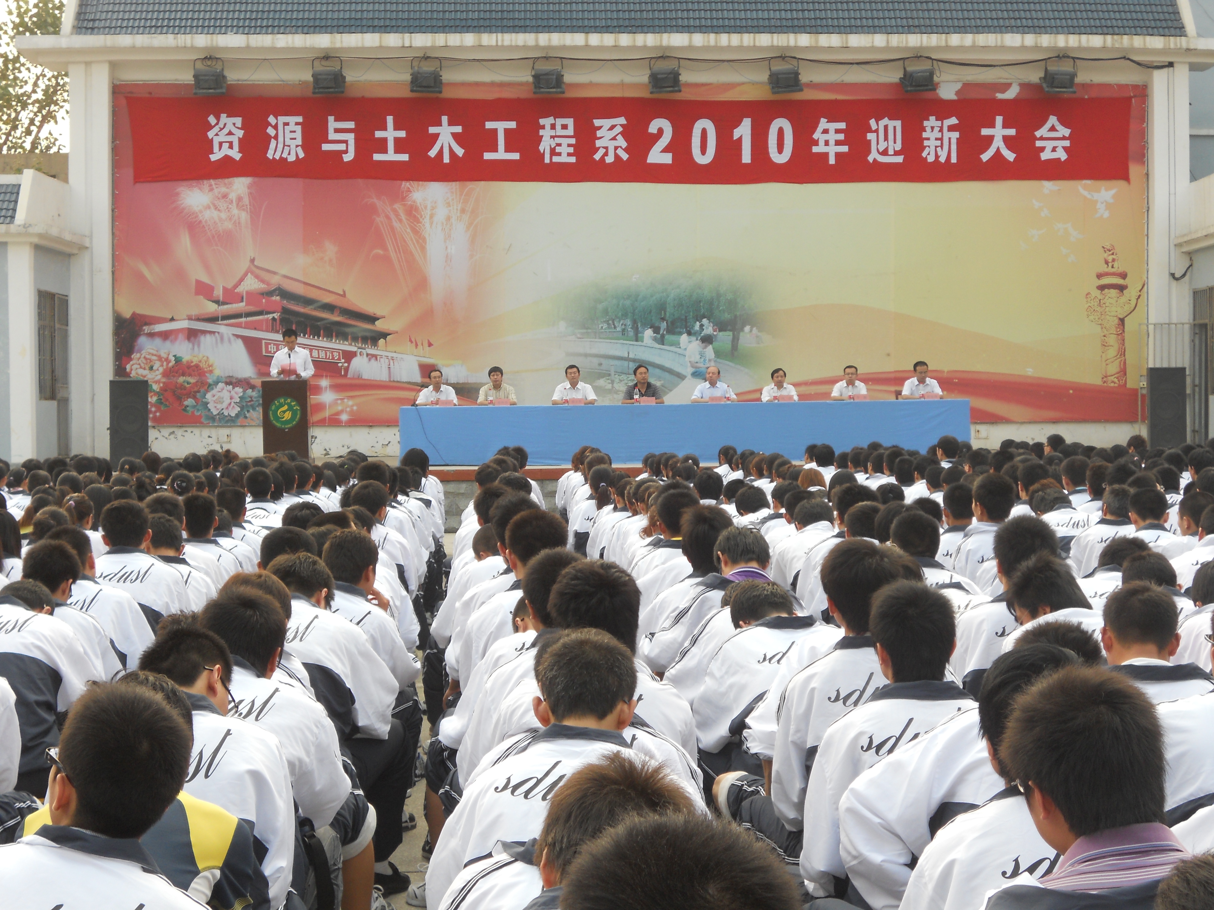 2010年9月12日下午,资源与土木工程系在文化广场隆重召开2010级迎新大会,系相关领导高尚宇、贾宏俊、殷永贵、代进、连传杰、李楠、刘建民、程家国出席大会,资源与土木工程系全体辅导员及2010级新生参加了大会,大会由系党政办公室主任刘建民主持。