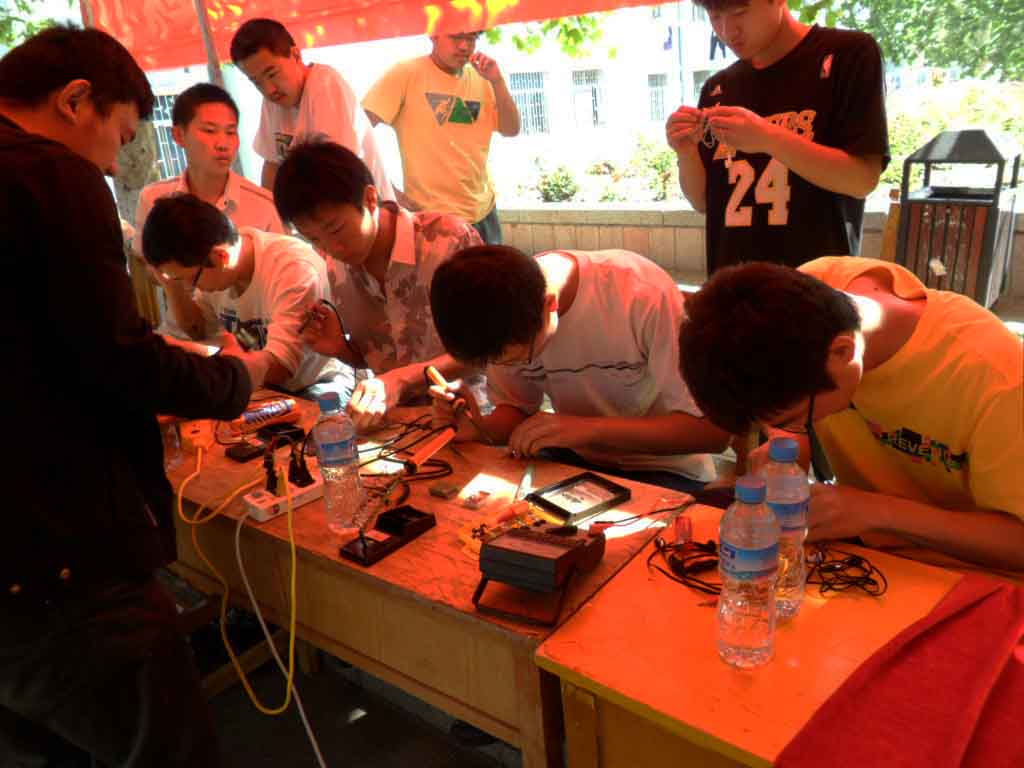 上午9时的活动一开始,便吸引了众多学生的目光。同学们纷纷带来了许多需要维修的小电器,如收音机、手机、MP3等常用电器。协会同学使用自己的工具,运用所学的专业知识,对电器进行现场维修,并有附近社区的居民也参与到活动中来。