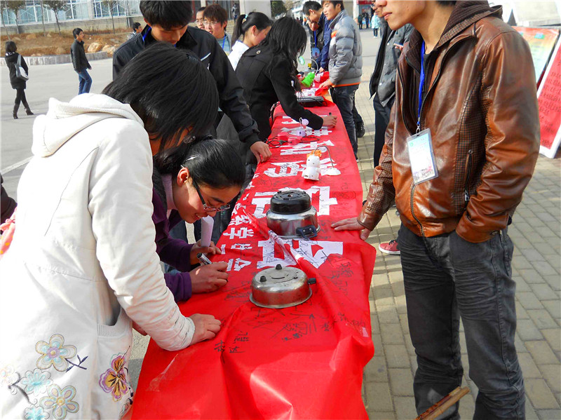 为进一步加强公寓用电管理,提高学生安全与防范意识,掌握用电常识,给同学们提供一个舒心的文明宿舍环境,3月22日,机电工程系学生会组织了“杜绝违禁电器,构建和谐宿舍”签名活动。
