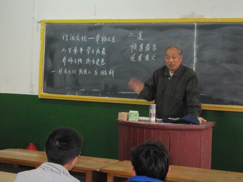 报告会 一开始,何君亮老师便用他那和蔼可亲的笑容拉近了与同学们之间的距离,同时,他幽默诙谐的语言也深深地吸引了与会的全体同学。何君亮老师深情地说:“我学习了一辈子的传统文化,感觉受益匪浅,今天拿出来与大家共勉。”短短的几句话便使我们看到了一位大家博学与谦逊的精神品质。会上,何君亮老师精神矍铄地为同学们讲解“道”和“义”,并用自己一生的经验向同学们诠释着“传统文化,幸福人生”的话题。