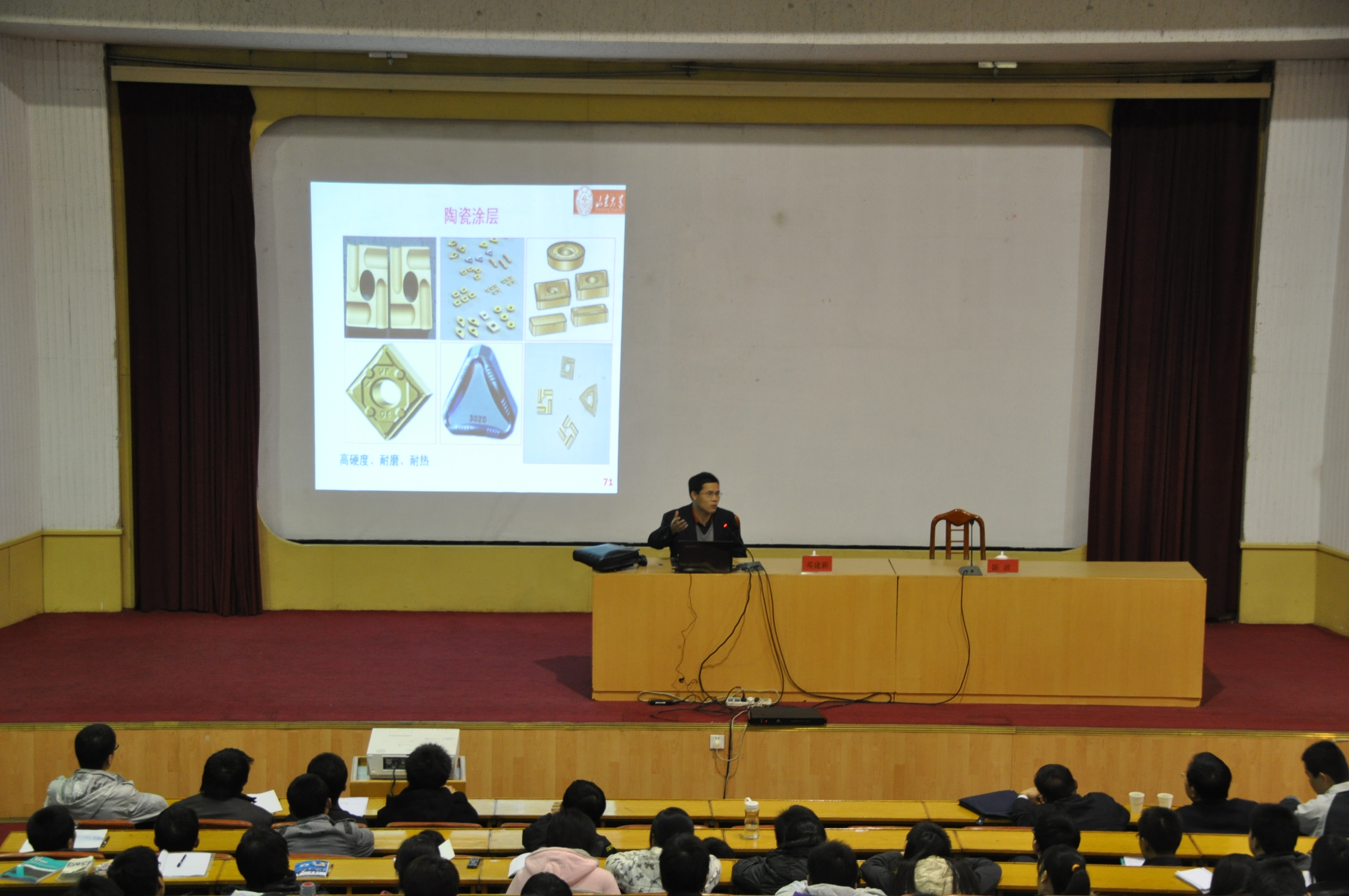 报告会上,邓建新教授就工程陶瓷的种类、性能、特点,工程陶瓷的制备工艺,工程陶瓷的加工方法,工程陶瓷的实际应用等方面为同学们作了详细介绍。深奥的理论解析,真实的图片展示,严谨的实验对比,生动形象的语言,把工程陶瓷全面地呈现给大家,让同学们从报告中真正领略到了工程陶瓷的风采。