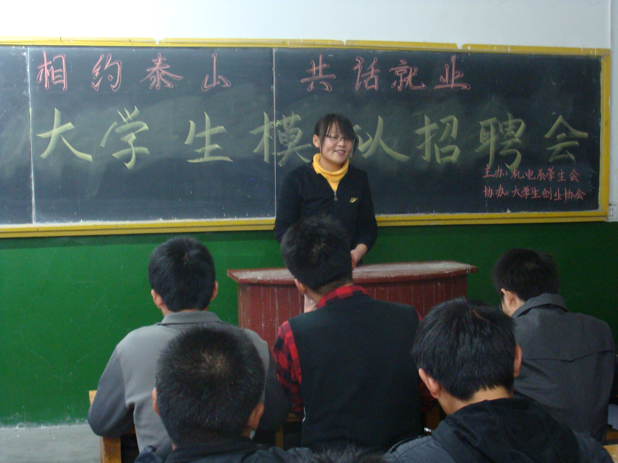 为全面推动和做好机电工程系2011届毕业生就业工作,给毕业生提供一个应聘锻炼的平台,顺利实现择业、就业,11月12日,由机电工程系大学生创业协会举办的大学生模拟招聘会初试阶段,在二号楼教室圆满结束。共有200余名同学参加了本次活动。