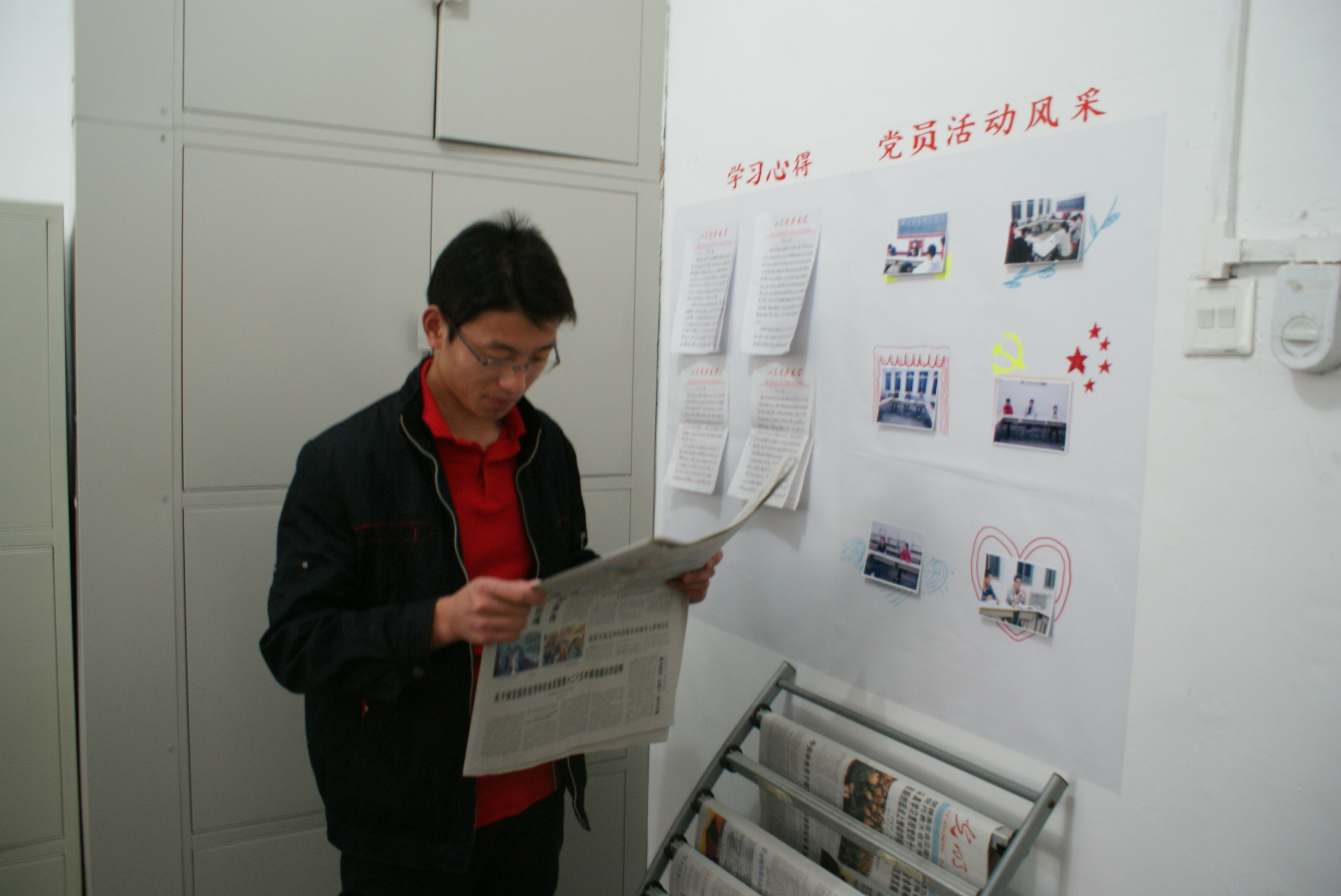 机电工程系党组织十分重视学生党员活动室的建设,购置了一些与党建工作、党组织、生活有关的书籍、杂志,给学生党员创造了一个学习党内知识的良好氛围。用学生党员代表王芬芬的话来说:“学生党员活动室的建立,在学生和党之间架立起一座沟通的桥梁!”(作者:魏巍 李亚宁)