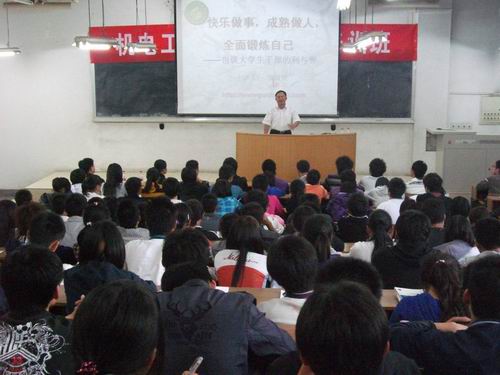 报告中,郭钦贤说:学生干部就是一个集体的当家人,主要锻炼的是自身经营管理人事的实践能力和善于思考的为人处世能力。他说:作为学生干部,要有才气,有能力,有爱心,会说话,会尊重人,并给出了具体的注释。郭老师结合就业现状与社会人文等方面因素,用朴素而又幽默的语言对学生干部的利与弊做出了不一样的诠释,博得了同学们的阵阵掌声。最后,他希望各位学生干部要珍惜这个展示自己的平台,快乐工作,成熟做人,全面发挥自己的能力,为大学生活划出一道亮丽的风景。