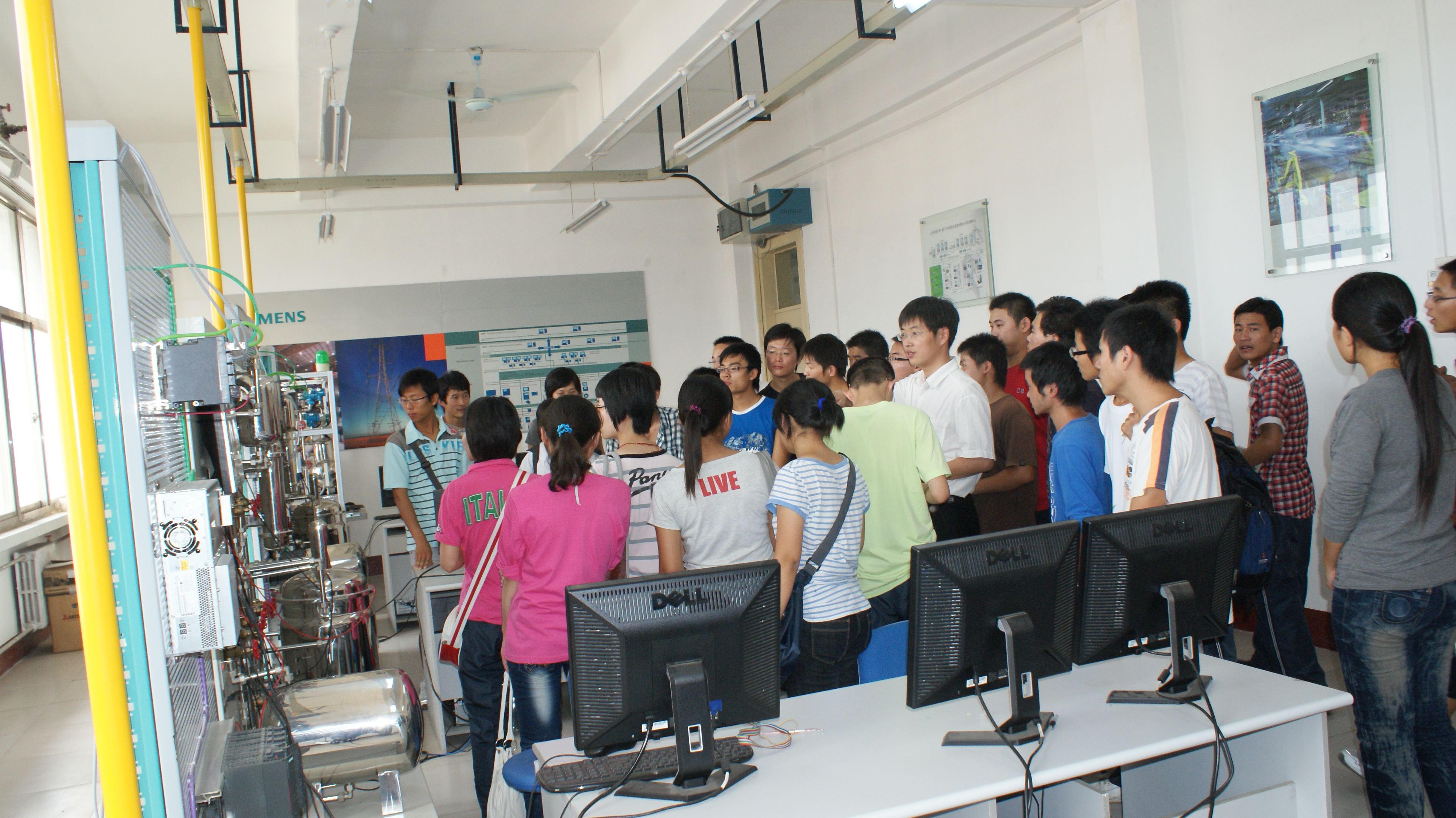 为使2010级新同学尽快的适应大学生活,了解自己的专业方向,激发他们对专业学习的兴趣,引导学生切身感受实践的魅力,9月13日,在机电工程系实验副主任陈波、系团总支书记谢清勇及各辅导员老师的带领下,机电工程系近800名2010级新生参观了学校实习工厂和系实验室。