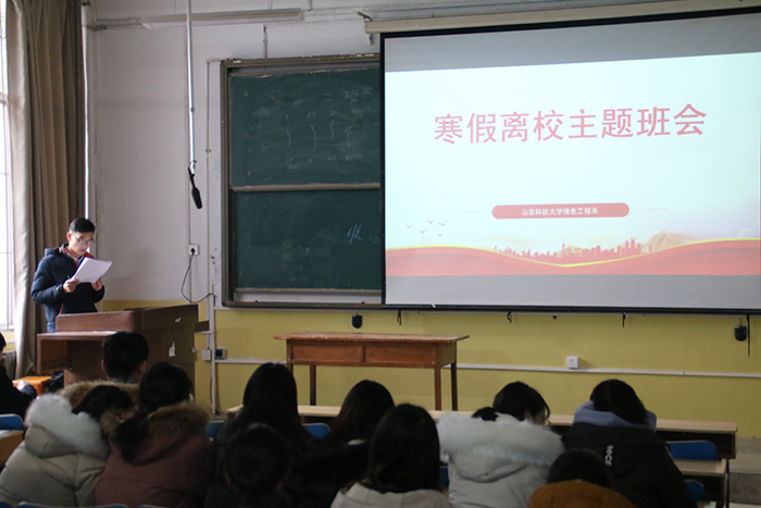 为进一步强化考风考纪,提高同学们的寒假安全意识,切实做好学生假期安全文明离校工作。12月23日,信息系各年级分别召开主题班会,信息系全体学生参加,会议由各年级辅导员主讲。