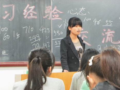针对10级部分同学对考研存在迷惑,对自己未来目标迷茫等问题,5月24日,经管系辅导员鲍万杰特邀我系在2011年全国研究生考试中成绩突出的焦春丽、孙玉萍、孙琳做客国贸班,与学弟学妹们面对面交流学习心得。经管系国贸专业10-1班、10-2班全体同学参加此次座谈会。