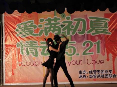 初夏,一个充满爱的时令,在激情的五月,释放着爱的能量。此次周末文化广场,经管学子尽情的欢歌,尽情的纵舞,不仅将大学生青春的活力表现的淋漓尽致,更让他们懂得珍惜拥有,把握幸福。(作者:赵璐)