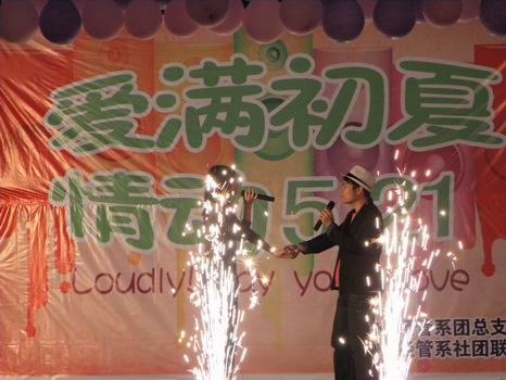 521晚,由经管系团总支主办、经管系社团联合会承办的以“爱满初夏,情动5·21”为主题的周末文化广场在西校园礼堂前精彩上演。