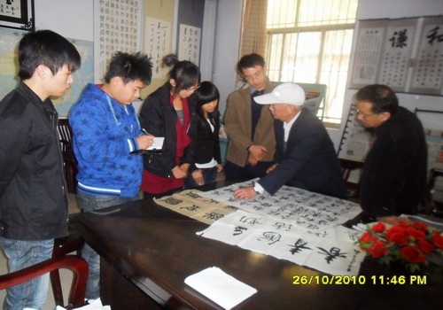 本次活动得到经管系领导老师的高度重视,在经管系社团联的精心组织下,广大书法爱好者们走进老年活动中心,与前辈交流、学习、切磋,挥毫泼墨,文笔聚重阳。一张张墨宝,苍劲有力,笔走龙蛇;一幅幅绘画,色彩鲜明,争奇斗艳。虽然作品的笔法不同、形式各异,但浓郁的“重阳”之情汇集着各方精华,让人们倍感温馨。看到当代大学生们对书法艺术的无比热爱,原教务处处长方文亲自为同学们提笔献字,并对同学们的作品予以点评。
