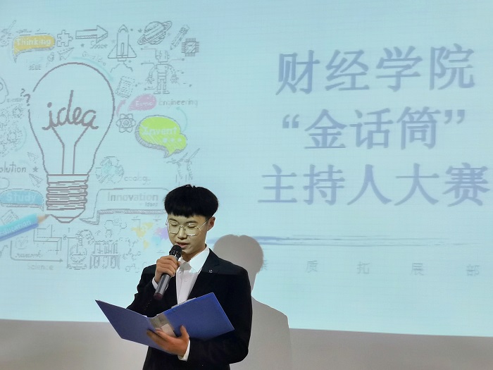 近日,财经学院于1C103教室举办第十四届“金话筒”校园主持人大赛初复赛。比赛邀请校区学生会大学生艺术团主持部部长杜亦菲、财经学院学生会部长代表担任评委。