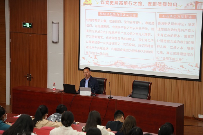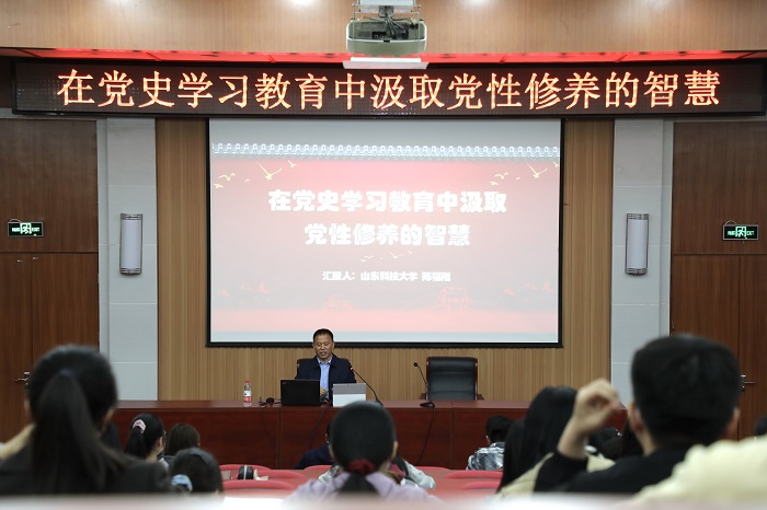 为深入扎实开展党史学习教育,促进党员做到学史明理、学史增信、学史崇德、学史力行,不断提高党性修养,4月14日,财经学院特邀学校“山海泉”宣讲团成员陈福刚做党史学习教育宣讲。财经学院师生党员现场聆听了宣讲,学院党委书记王斌主持宣讲会。