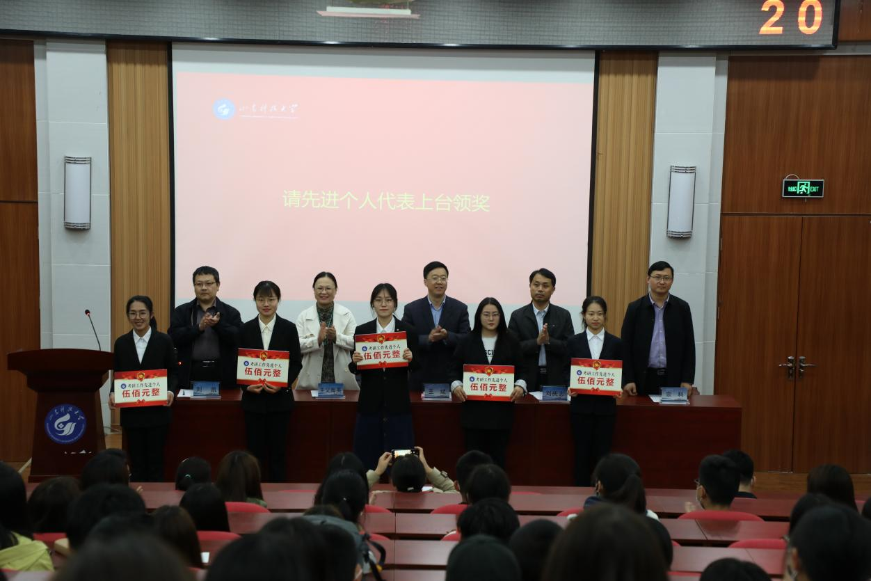 会上,学院党委书记王斌宣读了学院表彰决定。随后,学院领导对2020年考研工作先进集体以及先进个人进行颁奖。颁奖完毕后,优秀毕业生代表、在校生代表和教师代表林晓乐依次进行了发言。林晓乐老师讲到,考研过程中要忠于内心,明确目标,做好规划,有效学习,坚定信念才能争取成功。