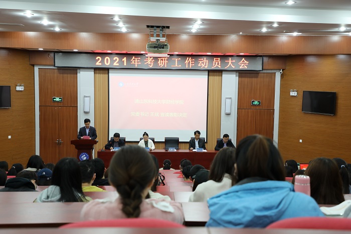 为弘扬优良教风学风,促进教风学风建设,扎实做好2021年学院考研动员工作,激发学生考研热情,4月22日,财经学院在八角楼报告厅举行2020年考研工作表彰暨2021年考研工作动员大会。大会由学院党委副书记、副院长刘凯主持,学院领导班子、各部门负责人和各系部主任、受表彰学生代表和全体参加2021年考研的学生参加会议。