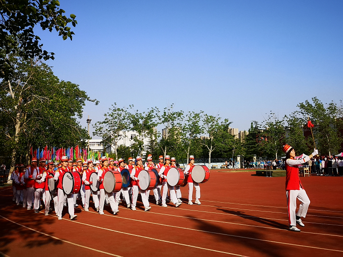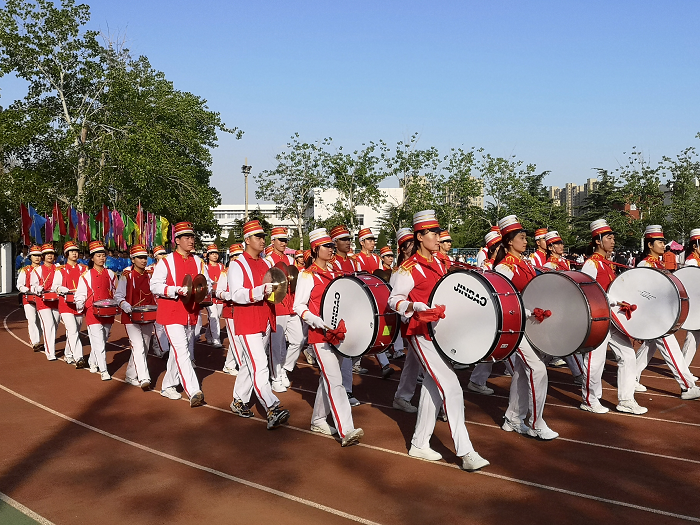 4月28日,为了迎接即将到来的校区田径运动会,根据校区统一安排,财经学子于西校园操场有序参加鼓乐队彩排。