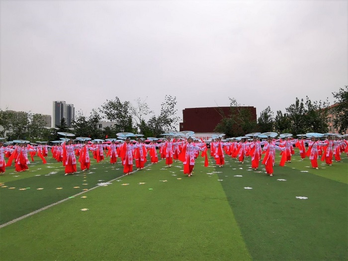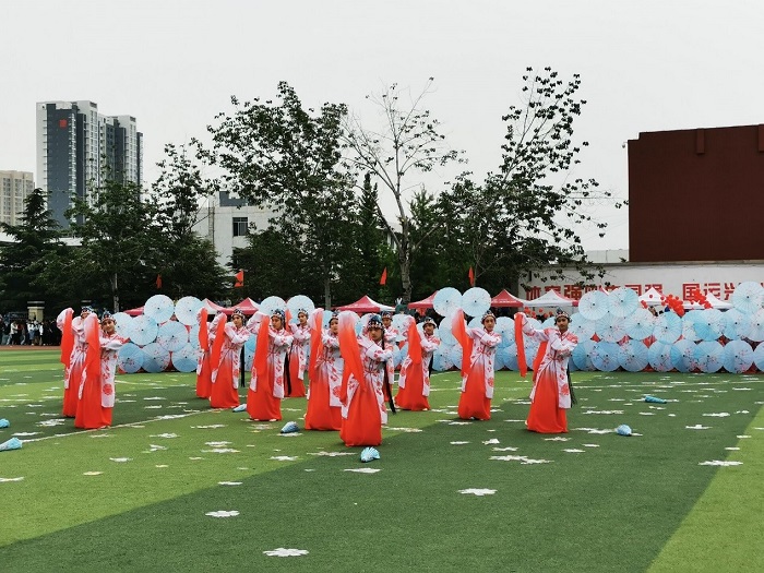 开幕式上,财经学院方队展现青春风采,朝气蓬勃的财经学子迈着整齐的步伐,伴着嘹亮的口号,昂首阔步,意气风发。学院开场舞汇演《梨花清影》更是带来一场视觉盛宴,同学们踏着梨花碎步,持伞而立,水袖轻舞,优美曼妙,在队型的不断变幻之中,或汇聚成片片伞花,或配合默契盈盈蹁跹,舞步整齐,亮点纷呈,尽展财经学子独特的精神风貌。