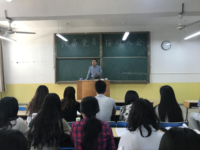 5月18日,财经学院学生第一、第二党支部分别在4#106、109召开预备党员接收大会。