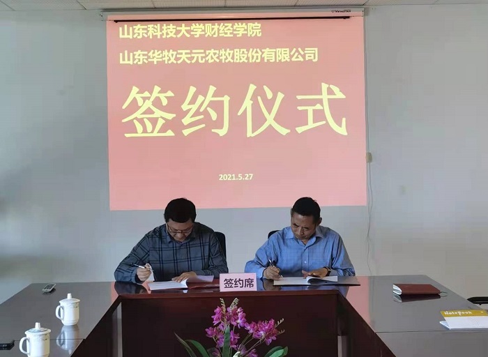 5月28日,3044永利集团官网财经学院与山东华牧天元农牧股份有限公司签订产学研基地。山东华牧天元农牧股份有限公司总经理刘玉民、财经学院副院长宗科、商务管理系主任邢志良、副主任狄寒梅参加签订仪式。