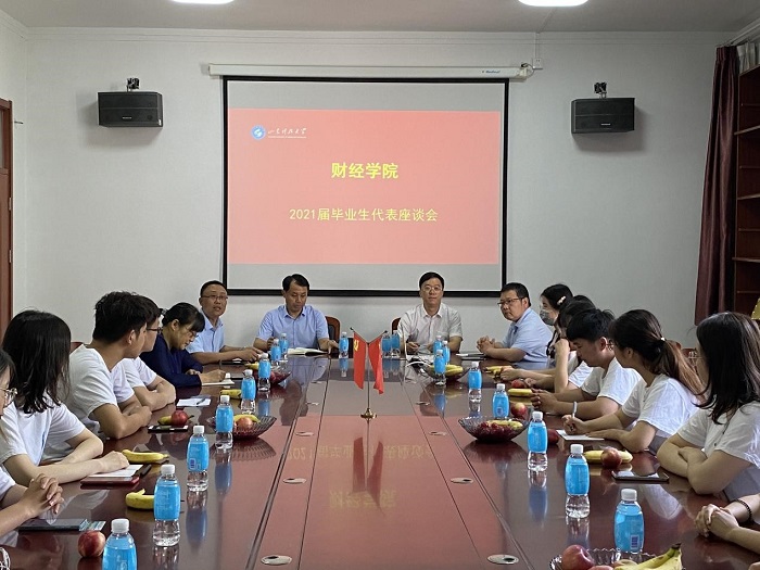 6月22日,财经学院召开2021届毕业生代表座谈会。学院党委书记王斌、院长刘庆志、副书记刘凯以及毕业班辅导员参加座谈,会议由学院团委书记(学工办主任)王衍国主持。