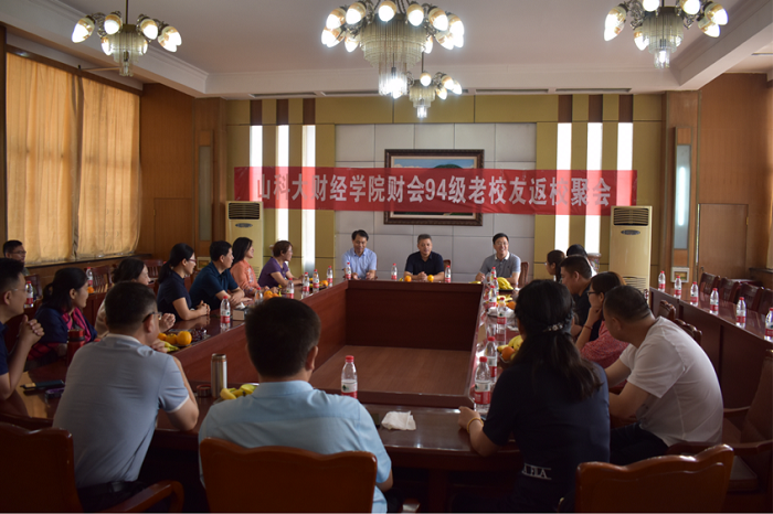 为促进校友之间的沟通,加强校友与学校之间的联系,增强校友们对母校的归属感,增进相互之间的友谊,鼓励和帮助校友们在各自事业中开拓创新、共同发展,7月17日,财经学院邀请94级老校友返校聚会,学院党委书记王斌、院长刘庆志、校图书馆副馆长,原辅导员田凯老师参会。