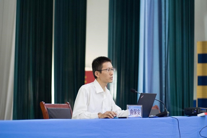 曲保安首先以图片、视频的形式向大家直观的展现了地震及其次生灾害的危害,强调了学习地震避险知识的重要性。随后,他分别从震前准备(了解地震发生原理、下载地震预警app、准备地震应急包),震中应对(“伏地、遮挡、手抓牢”)以及震后救援、安置(自救、互救,智慧救援)三个方面向大家介绍了如何科学合理的防震避震。