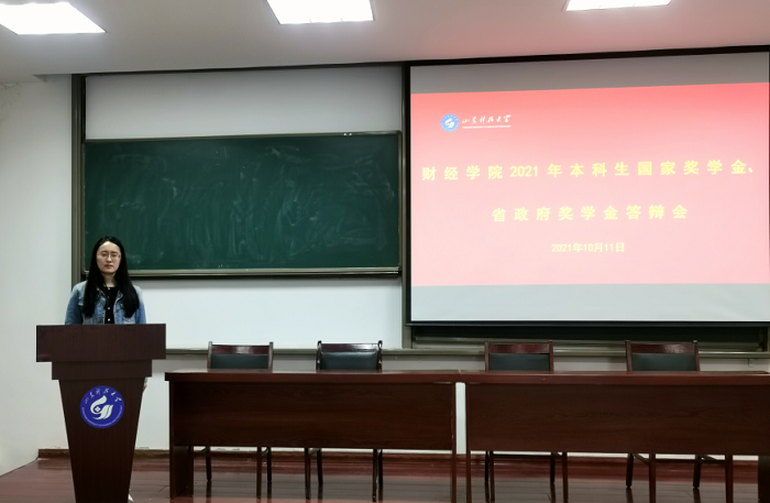 按照校区有关工作要求,10月11日,财经学院于4号楼4210教室召开2021年国家奖学金、省政府奖学金答辩会,会议由学生资助分管老师彭潇老师主持。