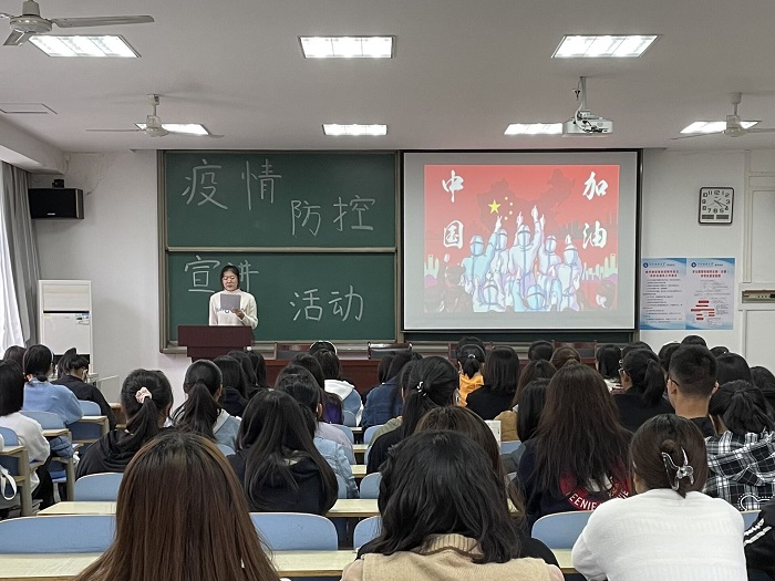 在负责人员引导下,同学们有序进场,并按要求佩戴口罩入座。活动开始,主持人首先进行疫情宣讲发言,介绍了我国当前疫情状况及防疫相关知识。随后,通过观看抗疫相关视频等,向大家讲述了疫情期间的那些温情故事,生动展现了一线工作人员的无私奉献精神。(文:崔永杰 图:黎景冉 任文静)