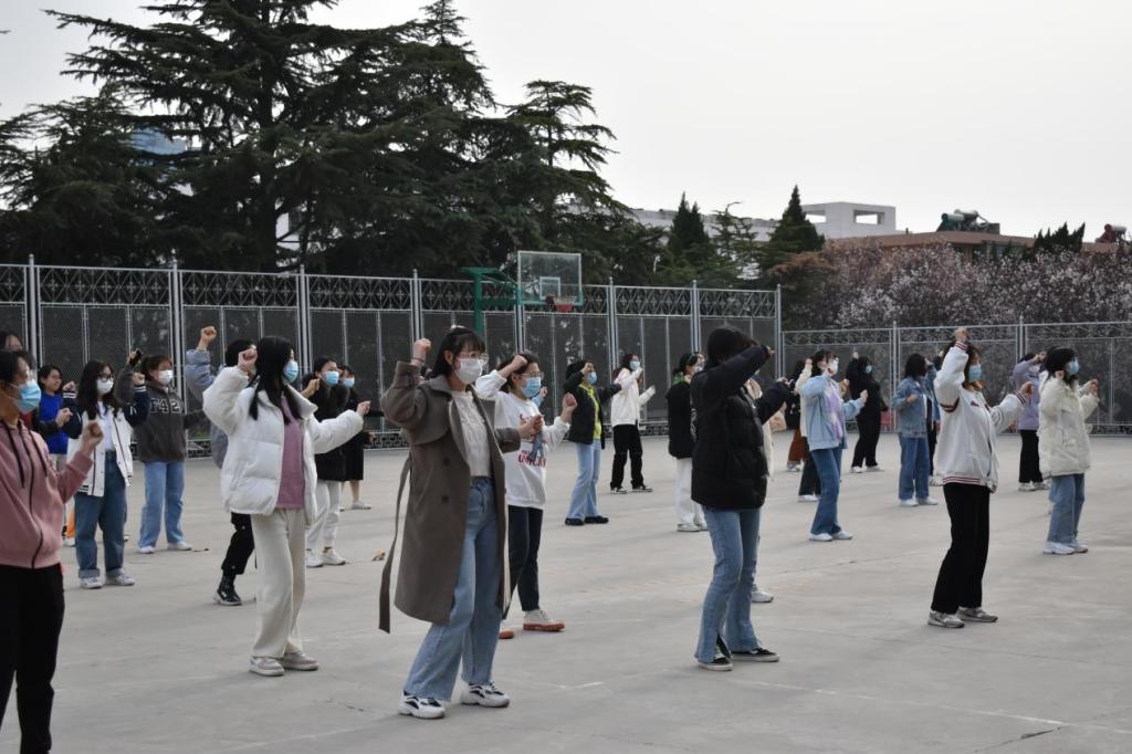 为丰富校园文化生活,驱散疫情下同学们的焦虑情绪,3月24日,财经学院于4号教学楼南侧篮球场举办“律动青春,绽放光彩”广场舞健身活动,学院师生积极参与。