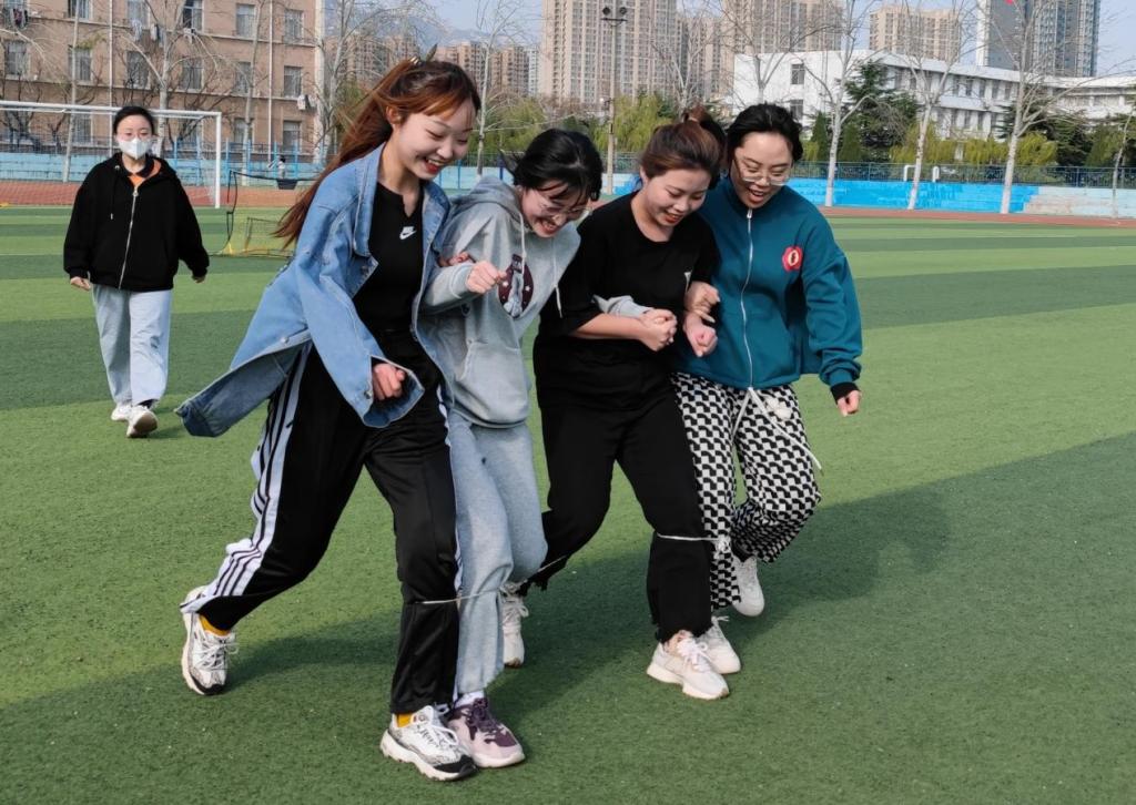 跳绳、抢板凳、四人五足、背对背顶球跑,各环节逐一展开,激烈又欢快的氛围不断浓厚。“四人五足”环节中,各组成员齐心协力,奔向终点,展现强大的团队凝聚力;“决胜局”抢板凳环节将气氛推向高潮,踏着鼓点,参赛成员们小心移动,一声“停”后瞬间落座,赢得胜利的队伍欢呼相庆,遗憾败北的队伍同样微笑打趣,直言虽败犹荣。活动最后,志愿者对每队积分进行统计,计算出活动的最终优胜者,各支队伍合影留念。
