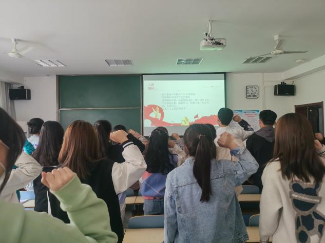 为切实加强各团支部建设,落实财经学院团委各项文件精神,牢固青年大学生政治觉悟与思想作风,4月16日,财经学院于4号楼210教室组织重温入团誓词活动。