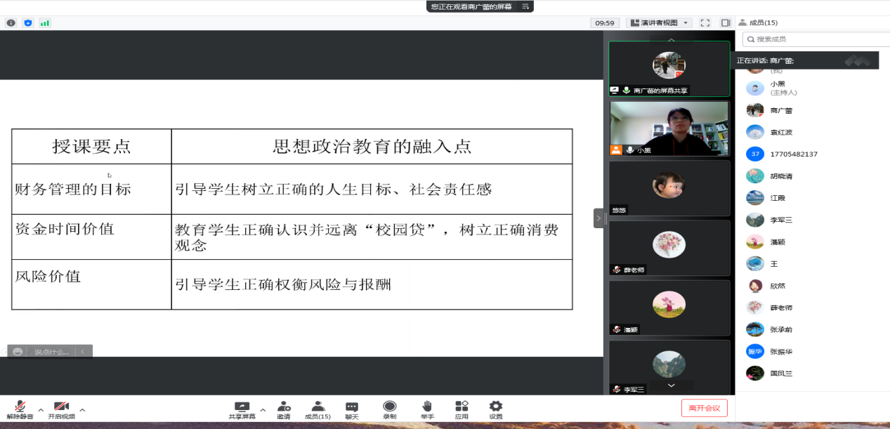 全院3个教学系共组织8位教师通过线上的方式进行了课程思政建设的主题交流,老师们对课程思政体系、内容、师资队伍等方面的建设情况进行了分享,重点介绍了各自承担的课程思政建设特色成果。