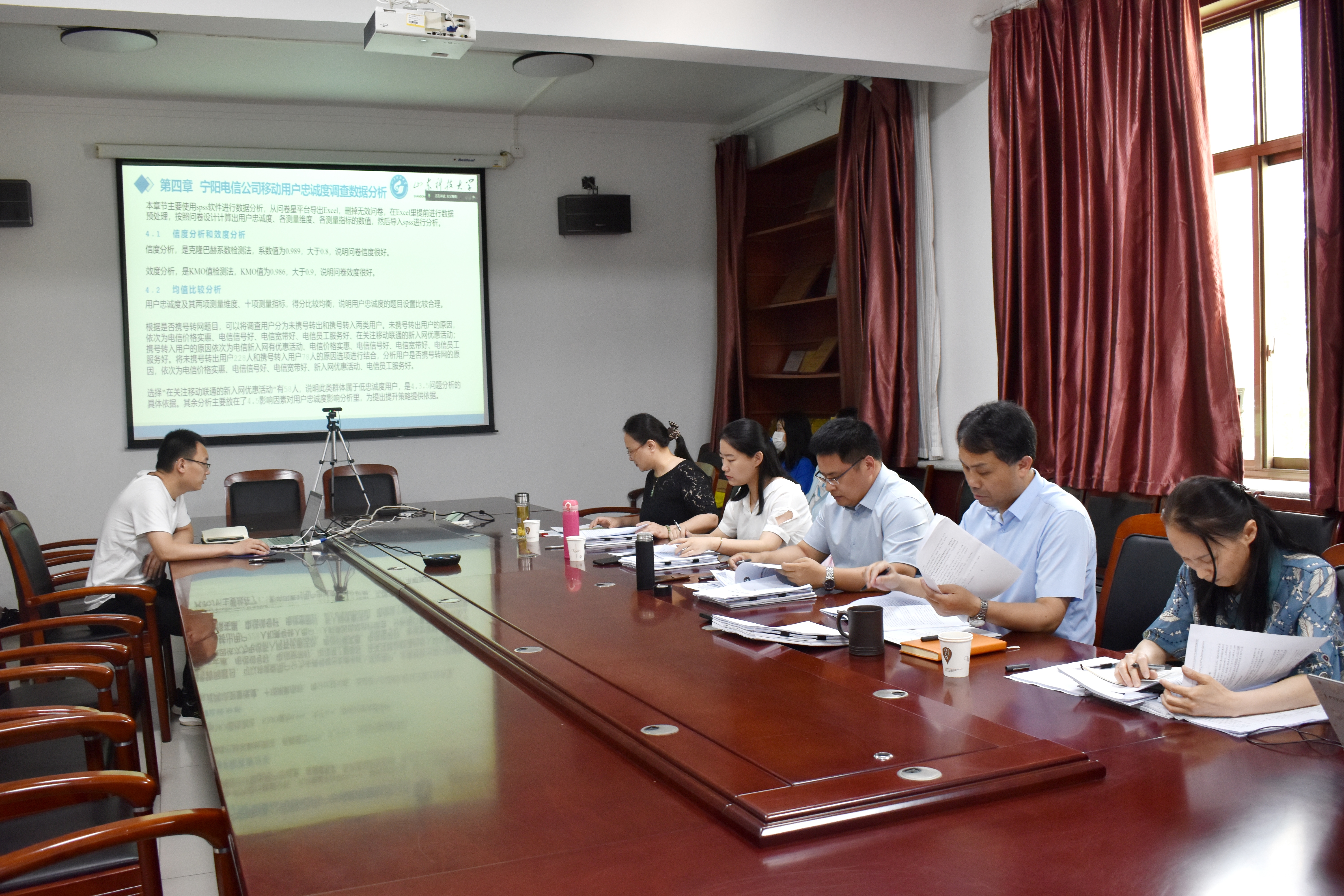 硕士学位论文答辩是学校审查研究生学位论文质量、检验学位论文真实性以及考察研究生理论功底、应变能力、表达能力的手段之一,是研究生最重要培养环节之一,也是研究生完成学业的最后一道关口。5月31日,财经学院举行2022届工商管理硕士(MBA)学位论文答辩会,山东农业大学经管学院徐宣国教授担任答辩委员会主席,学院2022届符合答辩条件的毕业生进行了现场答辩,2020级未参加答辩的同学及2021级MBA同学线上学习观摩。研究生学院相关负责人莅临答辩现场进行检查指导。