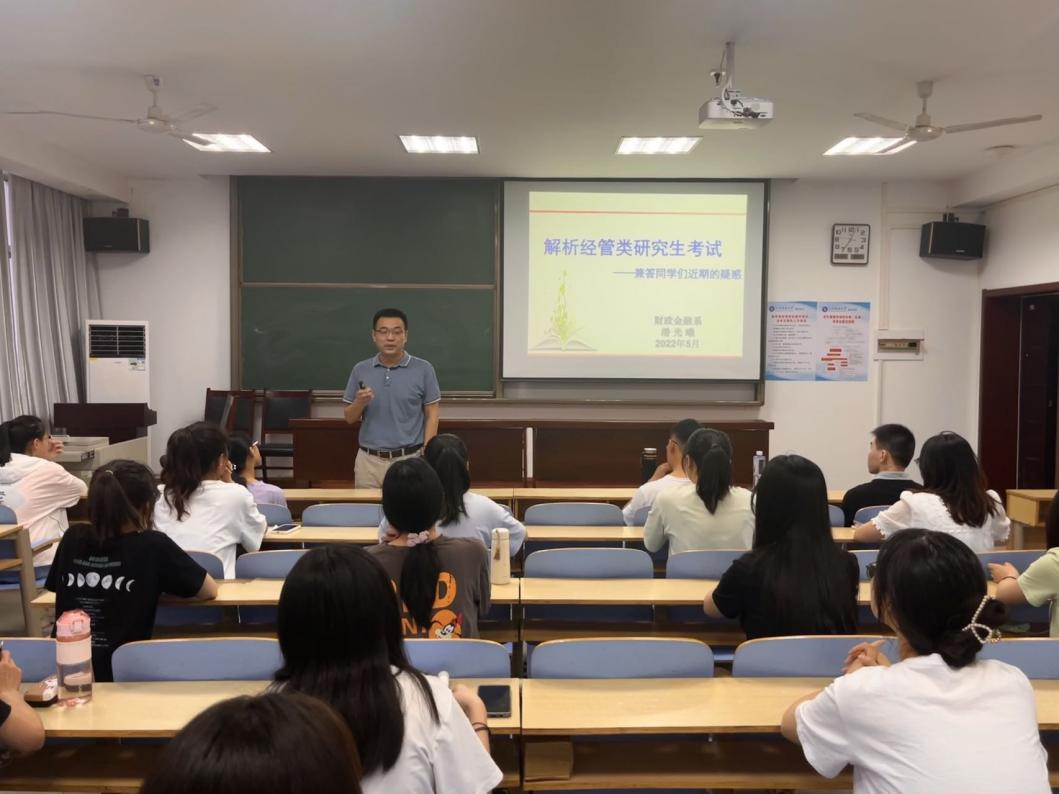 为帮助财经学子把握考研走向,树立正确的考研目标,提升考研竞争力,近日,财经学院在4号楼210教室组织召开考经管类研究生考试指导专题辅导。财政金融系潘光曦担任主讲老师,学院2023届毕业生积极参加。