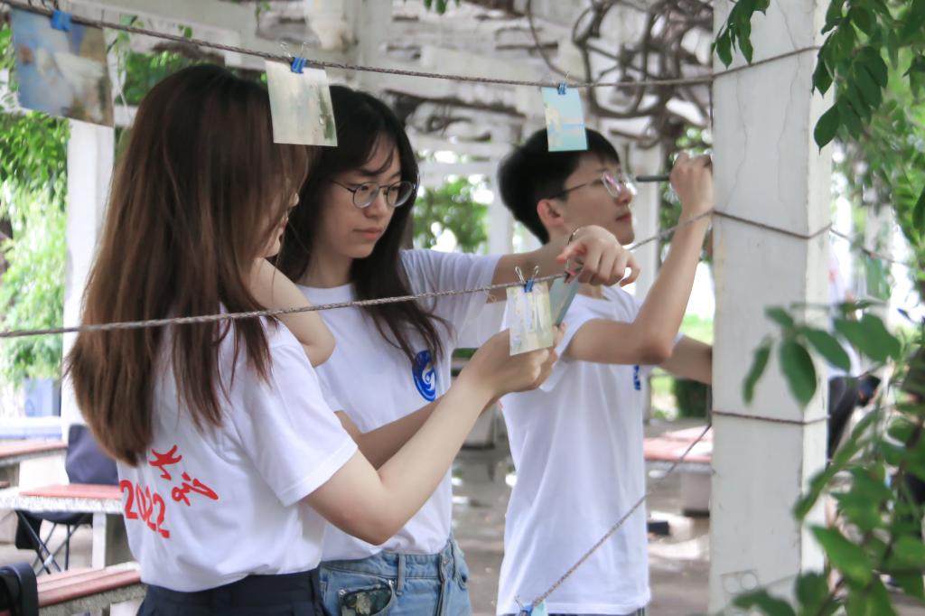 恩山义海,撰写留言!绿蔓下,鹰湖旁,满载心意的贺卡随风摇曳,上面饱含着毕业生党员对学校与老师的感恩之情,留言于盛夏,青春当远航。