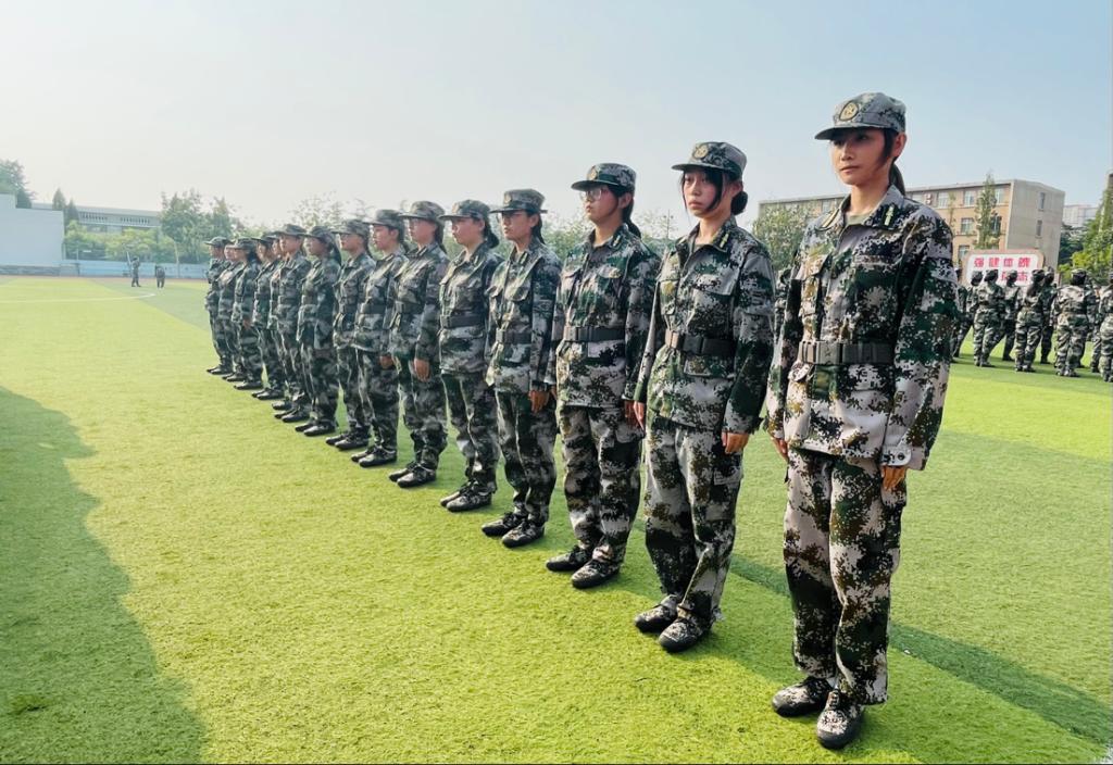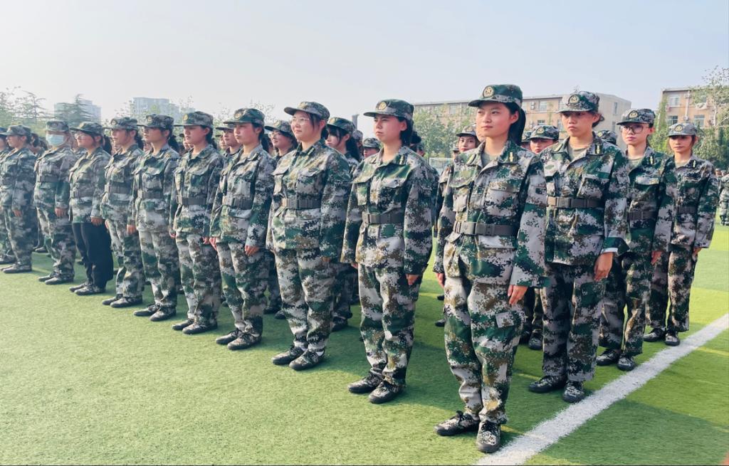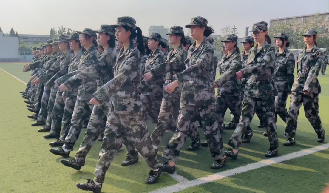 烈日当空,身着迷彩服的个个连队毫不懈怠,训练工作如火如荼。站军姿、停止间转法、脱戴军帽、齐步走等基本动作,在一遍遍的刻苦练习下,步伐更显整齐,同学们的精神面貌也更加昂扬。此外,同学们于休息时间一起学习唱军歌、展示才艺、互聊感想,无形中拉近了彼此的距离,使军训生活更显勃勃生机。