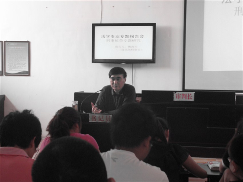据悉,此次邀请魏海军作报告只是文法系加强社会实践,挖掘第二课堂,提升综合素质的有益尝试。目前,仅理论知识而缺乏实践经验成为学生就业的一大障碍,文法系为帮助学生增加实践经验,在正常实习期外还开设第二课堂如模拟法庭等活动,并邀请法律实务人员来校作报告,帮助学生了解专业,为将来就业打下良好基础。(作者:王媛  摄影:杨喜荣)