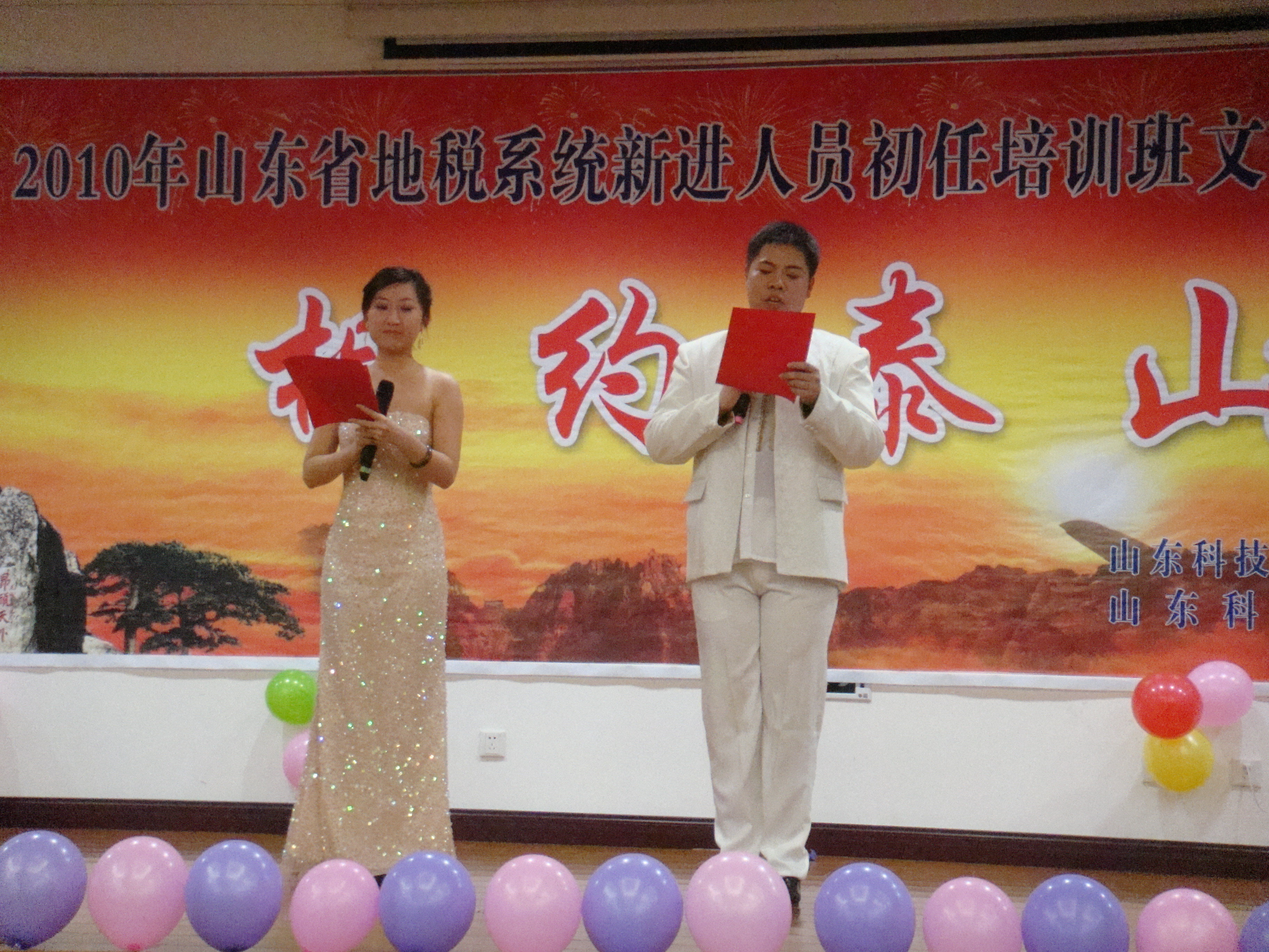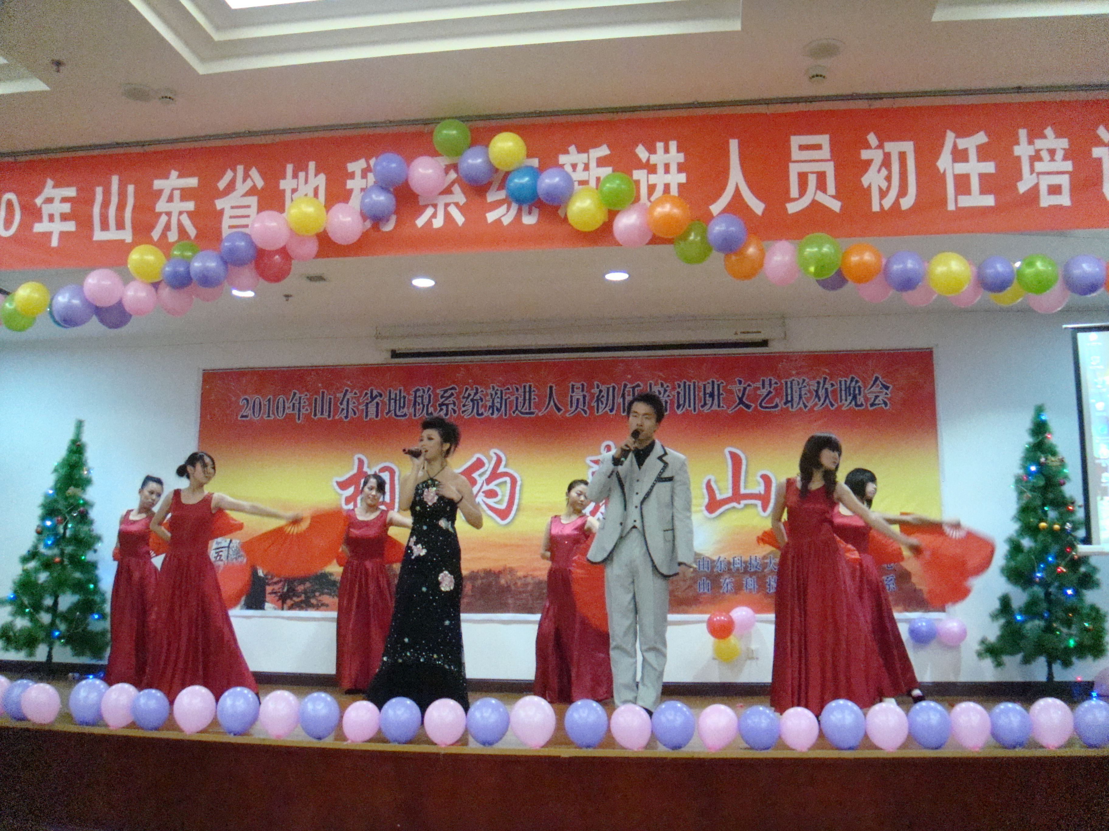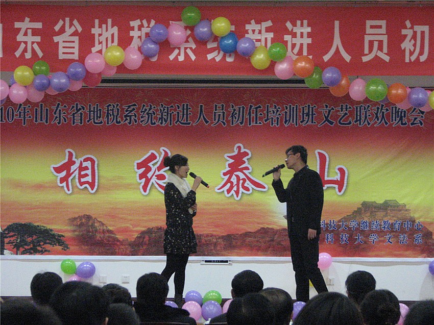 12月19日晚,2010年山东省地税系统新进人员初任培训班文艺联欢晚会在泰山疗养院礼堂举行,3044永利集团官网(泰安)继续教育中心主任李进鹏、文法系党总支副书记裴国栋、团总支书记郭涛林和120余名同学共同观看了演出。