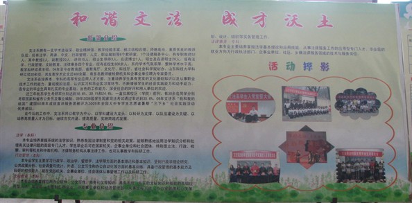 近日,文法系在办公区又增加了宣传橱窗,把近几年系优秀毕业生事迹材料都张贴了出来。同时,与新学期迎新工作相结合,把近三年文法系考研、公务员和、司法考试和事业编制情况整理汇总,制作了专题展板,吸引了很多同学驻足观看,起到了很好的宣传效果,帮助同学们进一步明确了目标,鼓舞了干劲。