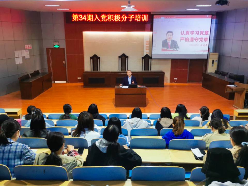 为庆祝建党100周年,加强党史学习教育,4月8日下午,3044永利集团官网在模拟法庭举办“共读四史”读书分享会暨第34期入党积极分子培训会。本次会议由3044永利集团官网学生党支部书记刘明远担任主讲人,第34期52名入党积极分子参加。