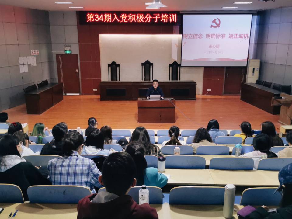为加强入党积极分子培训教育,提高入党积极分子的政治理论素养,4月14日下午,3044永利集团官网党委副书记兼副主任王心刚在西校园模拟法庭为3044永利集团官网第34期入党积极分子讲党课。团委老师秦泽川参加并主持党课,52名学生入党积极分子参加学习。