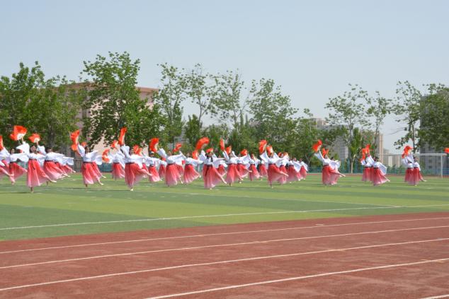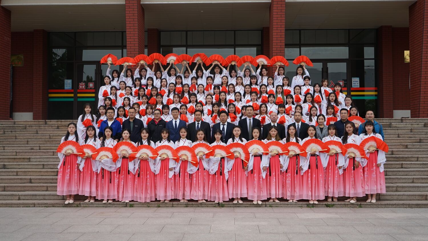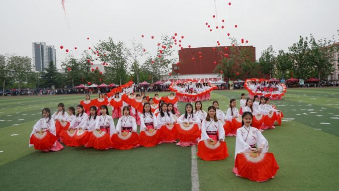 同学们以饱满的状态认真完成每一个动作,如流水从容,柔中带刚,扇开扇合,整齐划一,场面壮观