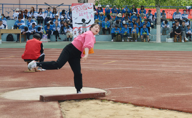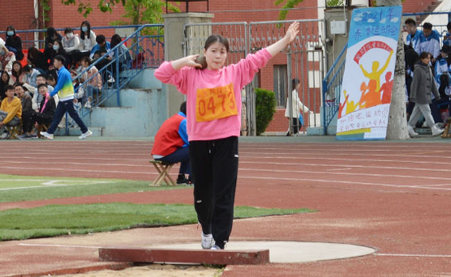 4月29日,校区于西校园操场举行学生女子铅球决赛。