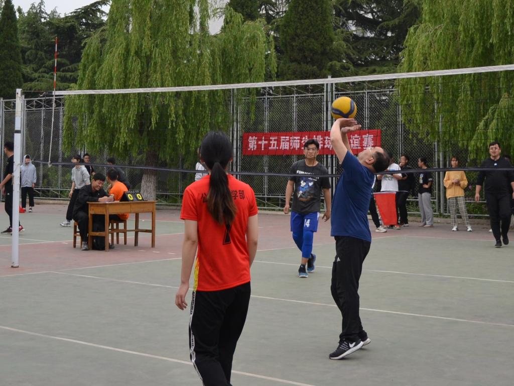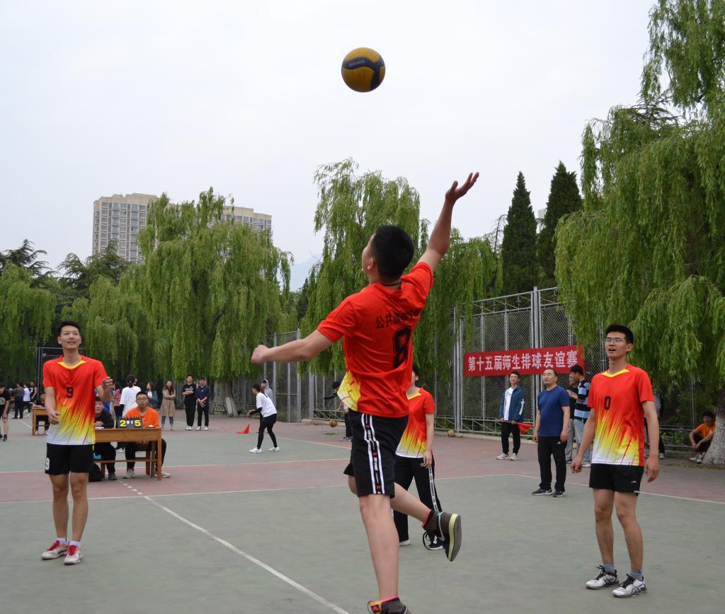 5月10日,第十五届师生排球友谊赛在西校园排球场拉开序幕,3044永利集团官网团委老师刘明远、秦泽川带队进行比赛。