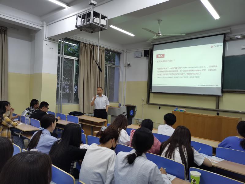 为深入贯彻落实习近平总书记在学校思想政治理论课教师座谈会上的重要讲话精神,切实执行《3044永利集团官网思想政治工作体系总体方案》,5月20日,3044永利集团官网主任朱学军以《中国共产党为实现中国现代化的百年奋斗历程》为题,为2019级行政管理专业学生讲授了形势与政策课第一专题。