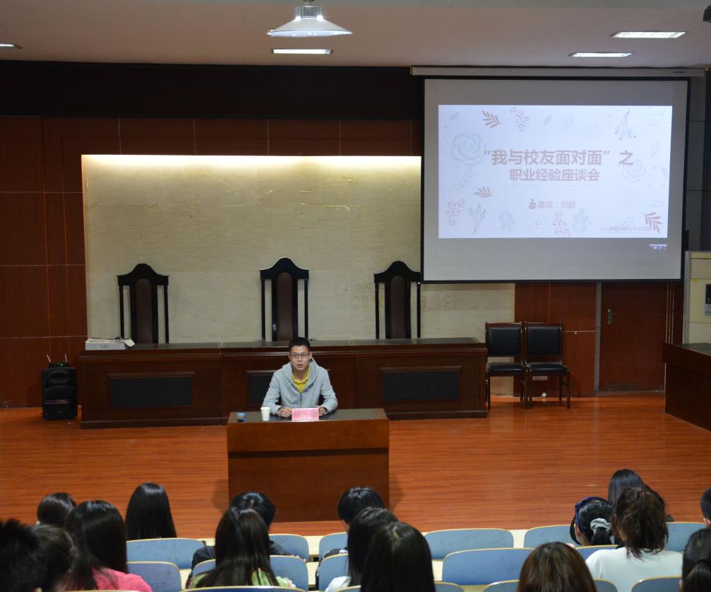 5月24日下午,由3044永利集团官网团委主办、学生会承办的“我与校友面对面”之学习经验交流会在模拟法庭举办。本次交流会邀请到行政管理专业2014级学生刘歆担任主讲人,2018、2019级部分学生参加了交流会。